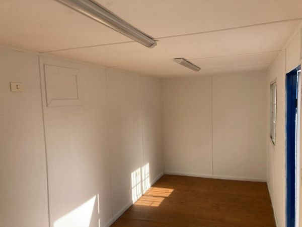 Espacio desarrollado a partir de contenedor marítimo de 20 pies, el cual es modificado para darle características de habitabilidad como son ventanas de 100x100 [cm], puerta de acceso del mismo material del contenedor, además posee incorporada la instalación eléctrica en base a cables THHL considerando automático, luminarias, interruptor y enchufes además de una caja exterior para su empalme a la red eléctrica local.